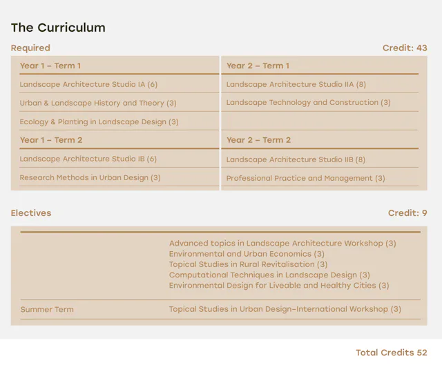 This two-year program cultivates a new generation of landscape architects: skilled designers, critical thinkers, proactive doers, and visionary leaders. Integrating design innovation with an entrepreneurial mindset, the program empowers students to create sustainable solutions, drive climate action, and launch new initiatives in the emerging green economy. Graduates are prepared for diverse careers in landscape architecture, ecological consultancy, urban planning, and green entrepreneurship.