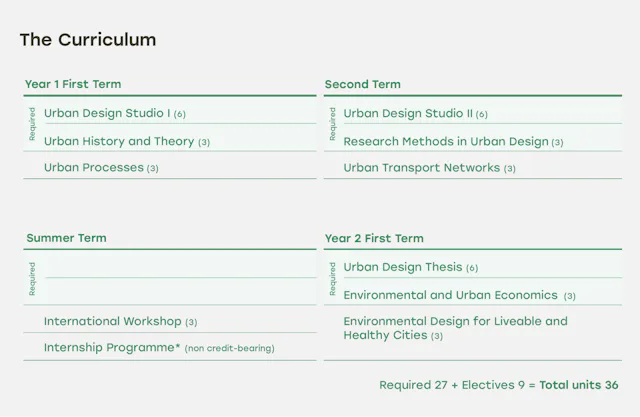 Application for admission to Master of Science in Urban Design programme in the academic year 2026-27 should be submitted via the Graduate School Online Application System no later than 16 January 2026 (Main Round) or 10 April 2026 (Clearing Round). Applications will be processed on a rolling basis until all places have been filled. Early applications are strongly encouraged.